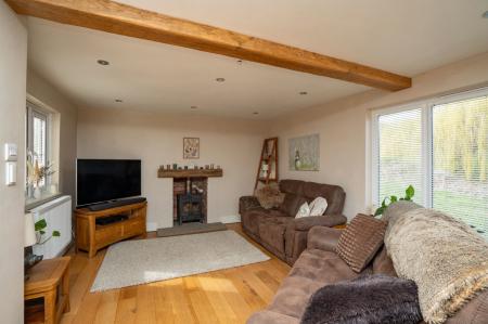 Wood effect flooring, double glazed window to side and rear, wood burning stove, two radiators, door to utility and door to:
