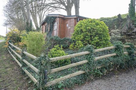Further areas of gravel and well-stocked beds add interest and colour, while a generous parking area provides space for at least three vehicles. A substantial log cabin, complete with power and lighting, offers excellent versatility as a home office, gym or studio, alongside two useful storage cupboards. Beyond this lies a pond, attractively bordered by established shrubs.
