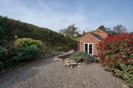 The garden at Dingle Cottage are a particular feature, thoughtfully arranged to provide a variety of seating and practical spaces while enjoying delightful views towards the Malvern Hills. To the front, a gravelled garden leads up to the entrance, with a pleasant seating area positioned to the side which is perfect for enjoying the surrounding outlook. A sunken oil tank is discreetly positioned within the grounds.