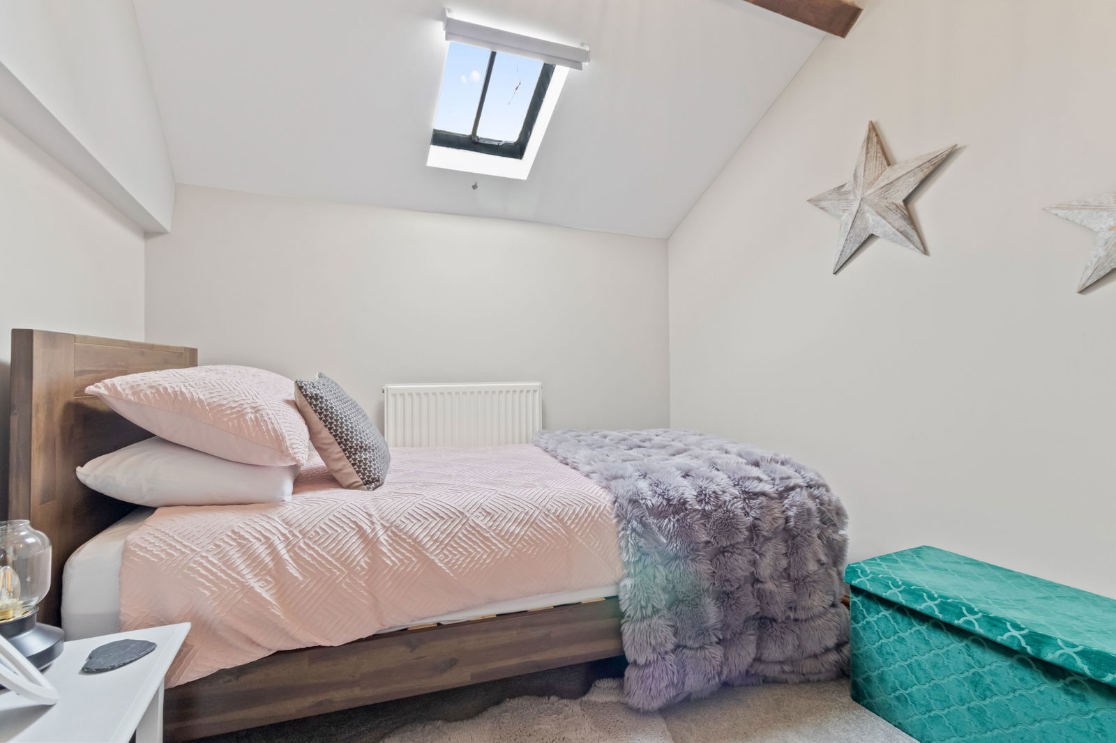 With vaulted ceiling with exposed timbers. Double radiator. Stripped floor. Stripped latch door. Double glazed window to front. Double glazed roof window to rear.