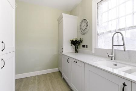 Feature pendant lighting. Sash window to the side aspect. Deep skirting boards. Wood effect laminate flooring.