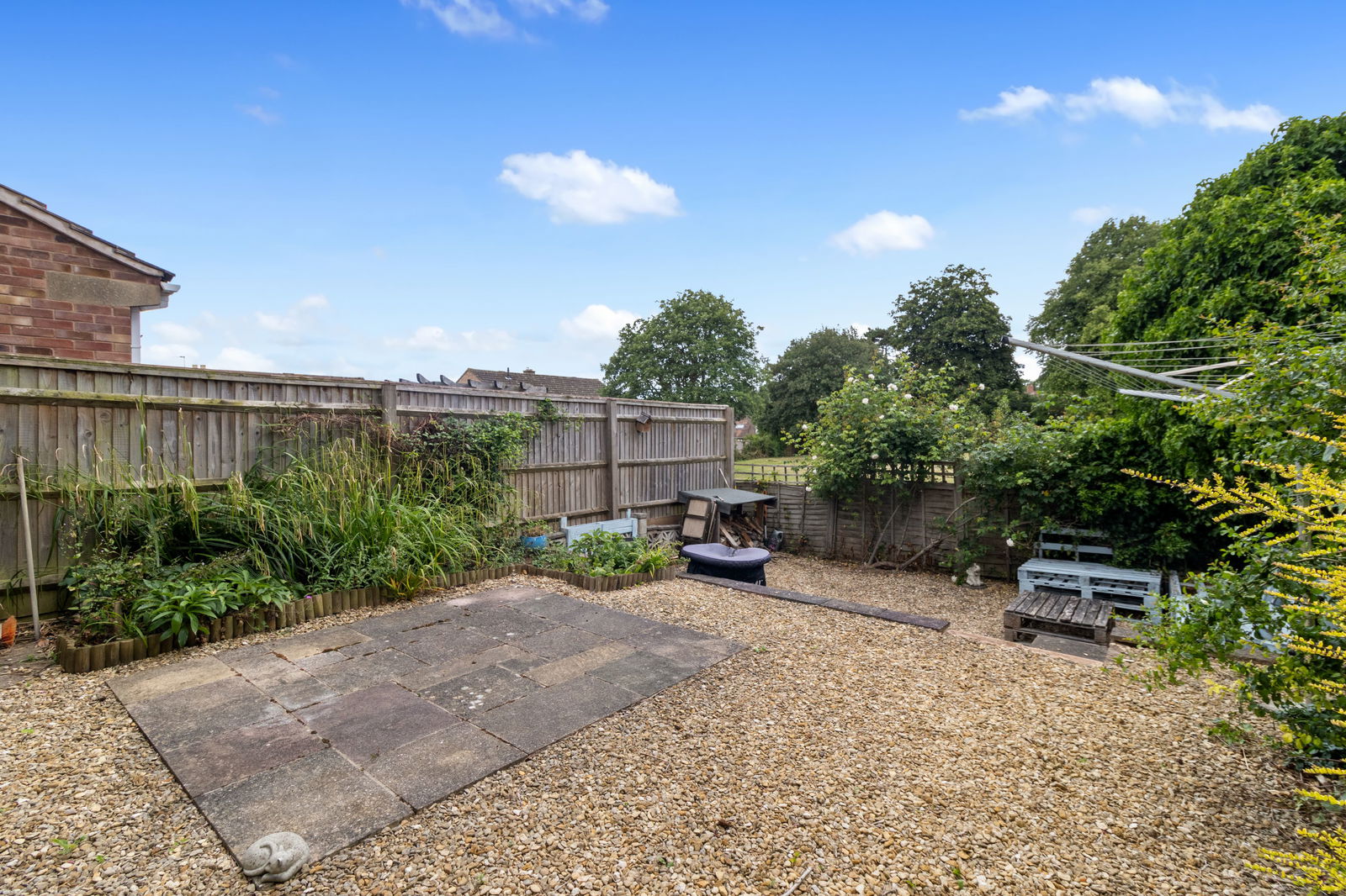 To the front of the property is a low maintenance gravelled fore garden with a driveway to the side providing off road parking. A gated pathway to the side of the property gives access to an enclosed rear garden which is pleasantly arranged with a large paved terrace and a selection of established plants and shrubs. The garden enjoys views over the school playing fields.