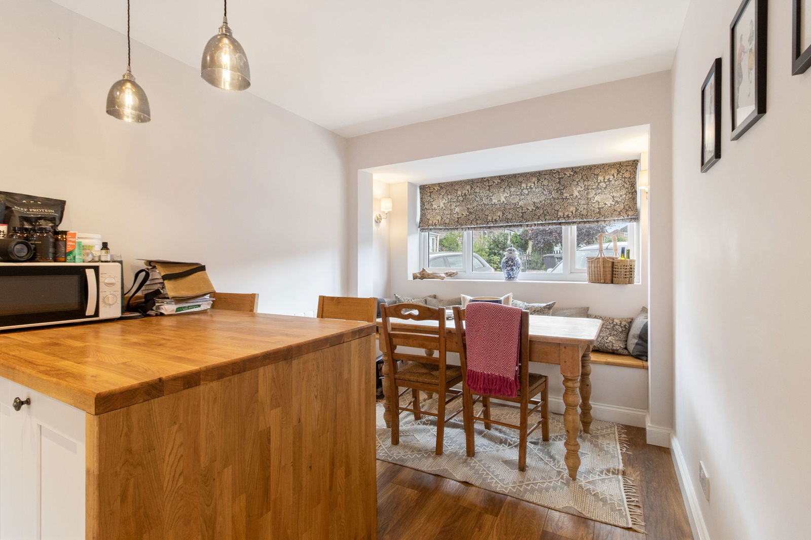 Open to the extended dining area converted from the former garage with double glazed window to the front with fitted window seating. Wood effect flooring throughout. Radiator.