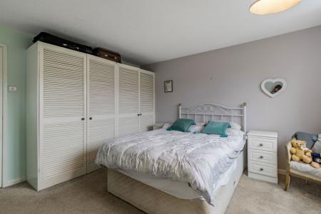 Fitted with a contemporary white suite comprising a large walk-in shower, inset wash basin and a WC. Fitted cupboards. Fully tiled surrounds. Chrome ladder radiator. Shaver light point. Airing cupboard housing a lagged hot water cylinder. Double glazed window to front.