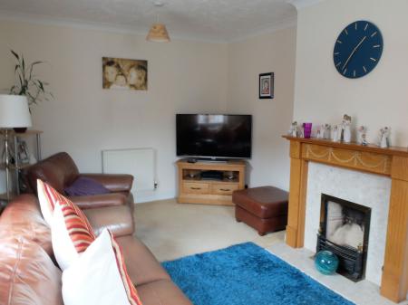 Two ceiling light points. Wooden framed double glazed windows to the front and side aspect. Two wall mounted radiators. An open fireplace with wooden mantlepiece and marble hearth.