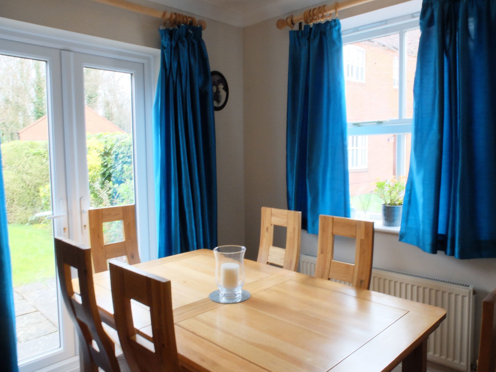 Ceiling light point. UPVC double glazed French door opening to the side aspect onto the rear garden. A wooden framed double glazed window to the front aspect. Wall mounted radiator. Wood effect vinyl flooring.