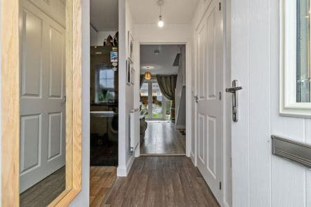 Entering via a composite front door into an entrance hall with ceiling light point. Wood effect vinyl flooring. Radiator. Door into coat cupboard housing 'Logic' combination boiler and fuse board, hanging space for coats. Open into...