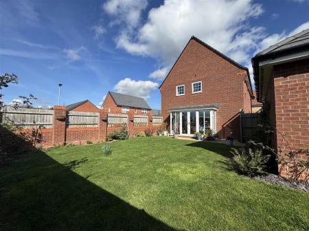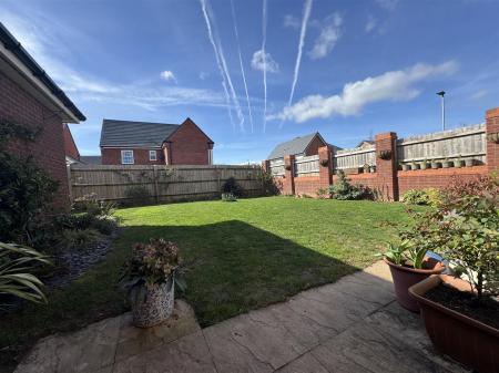 Outside - The main garden measures approximately 35'00" x 35'00" and is laid to lawn with surrounding planted borders and a small patio seating area. The gardens are enclosed by a combination of fencing and walling surround.