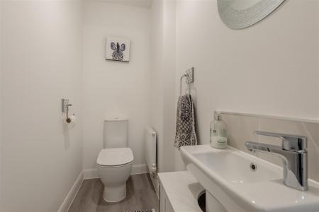 W.C - 1.88m x 1.02m (6'02 x 3'04) - White w.c, vanity basin with mixer tap, cupboard beneath, single radiator, extractor fan.