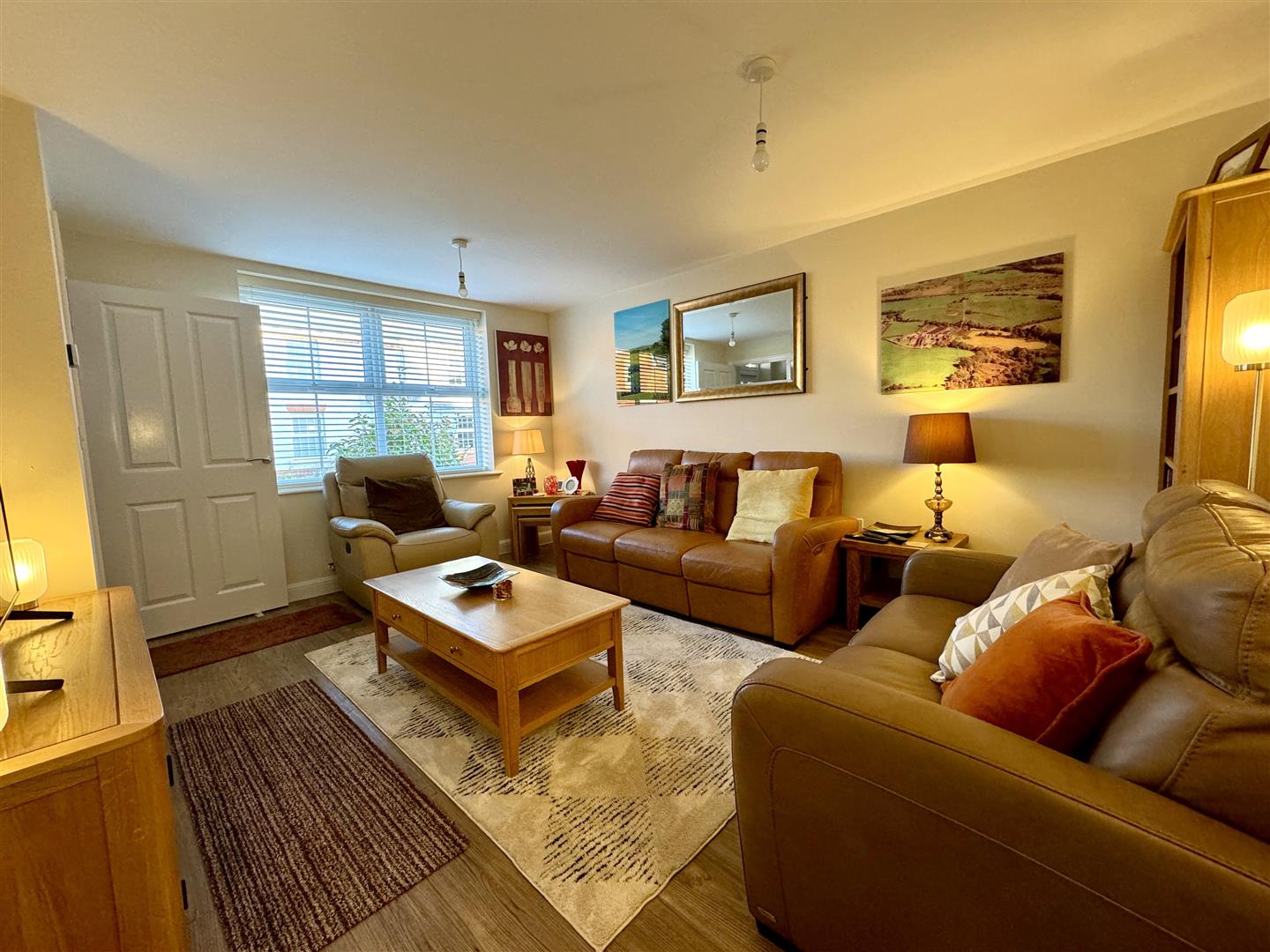 Lounge - 4.57m x 3.58m (15'0 x 11'9) - Wood effect flooring, thermostat control, two radiators, door to under stairs storage area, front aspect window. Door to: