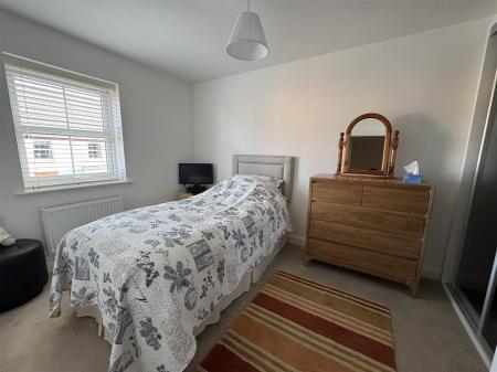 Bedroom 2 - 3.84m x 2.46m into built-in wardrobe recess (12'7 - Double wardrobe with mirrored doors, shelving and hanging space, radiator, front aspect window.