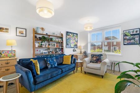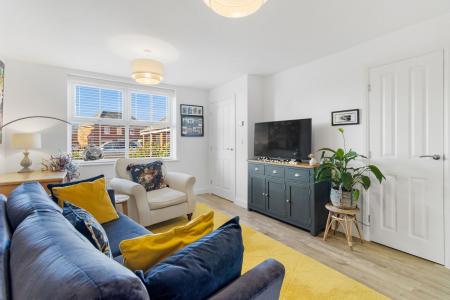 A well appointed, light room with double glazed window with fitted blinds to the front aspect. Two ceiling light points. Two radiators. Wood effect laminate flooring. Useful under stairs storage cupboard housing the fuseboard. TV point.