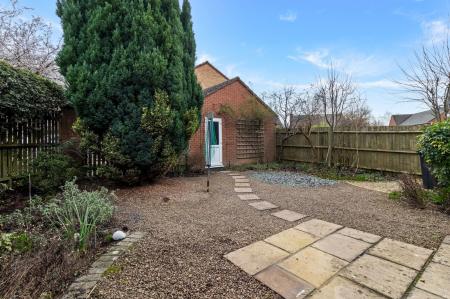 To the front of the property is a gravelled front garden with planted, mature border. Paved path leading to the front door.