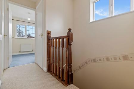 Ceiling light point. Above stair storage cupboard. Airing cupboard housing 'Worcester Bosch' boiler. Double glazed window to the side aspect. Radiator. Carpet.