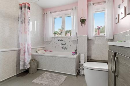 Re-fitted as a wet room with shower boarding throughout. Suite comprising vanity unit with WC and wash hand basin. Shower area with electric shower. Bath with mixer tap and shower attachment. Tall chrome ladder radiator. Double glazed window to rear. Useful storage cupboard. Access to loft space with drop down ladder.
