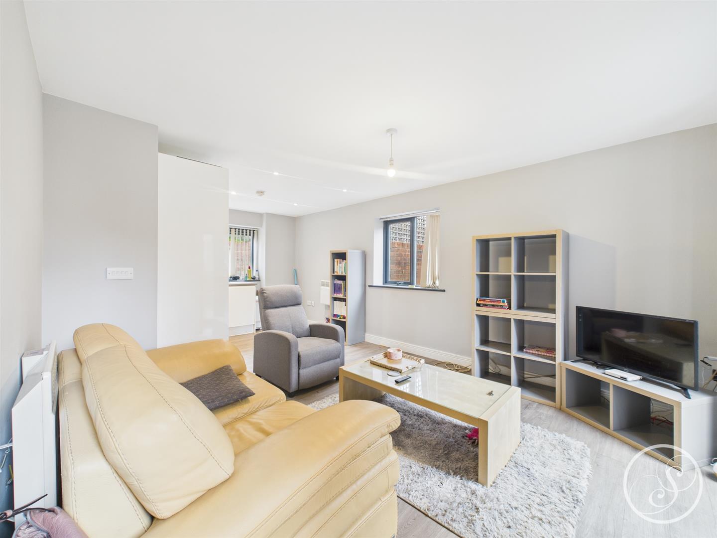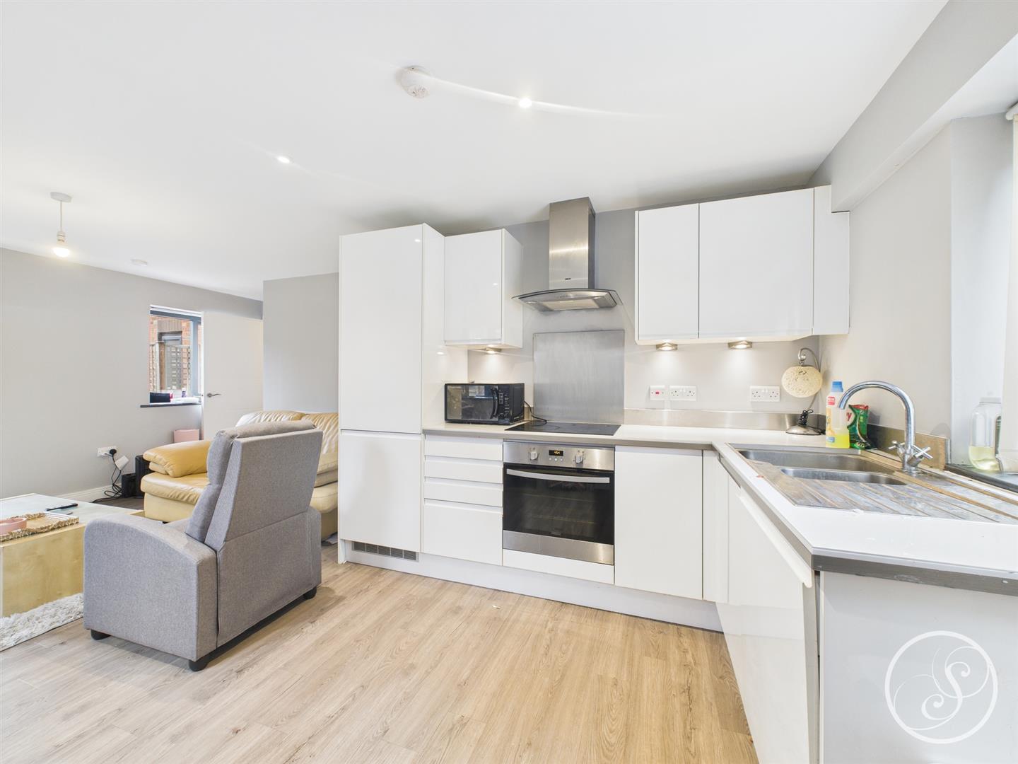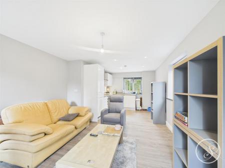 Living Kitchen - Open plan living space offers ample space for seating which is open the modern kitchen. The kitchen comprises integrated fridge/freezer, dishwasher, electric hob, electric oven and plenty of storage space. French doors lead out to the private courtyard.