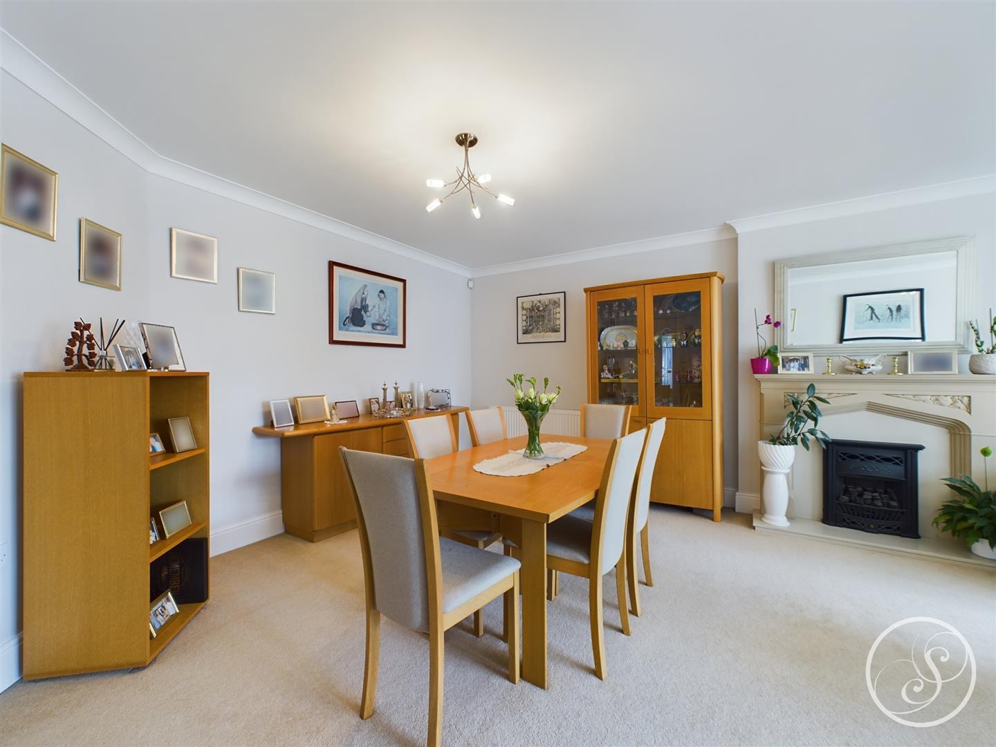 Lounge/Diner - Situated to the far end of the apartment is this wonderful open plan living space. Accessed from the hallway via double glass doors the room is laid to carpet and offers a wonderful space for hosting and socialising with an abundance of seating space as well as a dedicated dining area, and French doors that lead out to the patio and communal grounds. The room is wonderful and airy being flooded with natural light and boasts a feature fireplace as well as decorative coving.