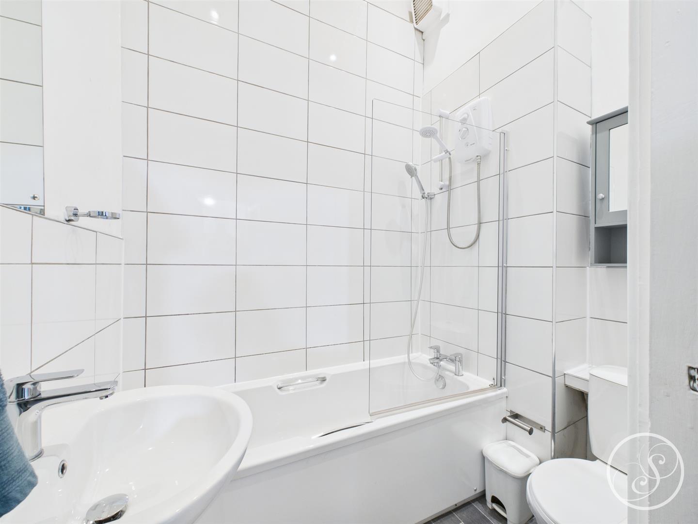 Bathroom - With high ceilings, partial ceiling coving, tiled walls to half height with full height around bath area, low level w/c with push button flush, wash hand basin with mixer tap, bath with taps and handheld shower over, separate wall mounted shower with glass screen, inset led spotlighting, extractor fan.