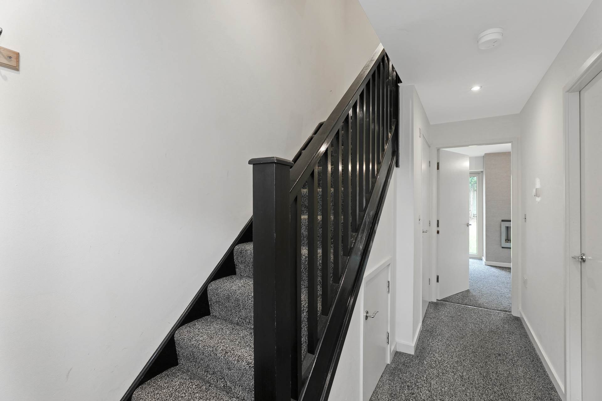 The inviting entrance hall leads you into the heart of the home, a spacious and functional kitchen/diner. The kitchen is equipped with a range of sleek wall and base units, providing ample storage space. It is fitted with integrated appliances, including a hob, oven which has recently been fitted, and extractor fan, ensuring convenience and efficiency, there is also space allocated for a washing machine and fridge freezer, adding to the practicality of the room. From the hallway, you also have access to a convenient downstairs WC, perfect for guests or for everyday living. The living room offers a bright and airy atmosphere, thanks to the two sets of French doors that flood the room with natural light. These doors open out to the well-maintained rear garden, seamlessly connecting the indoor and outdoor living spaces, making it ideal for relaxation or entertaining.