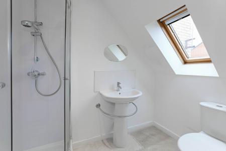 Moving to the first floor, you`ll find two double bedrooms, each offering ample space and light.The family bathroom, also located on this floor, is designed with functionality in mind, with an overhead shower. On the second floor, the master bedroom features an en-suite bathroom, providing both comfort and privacy.
