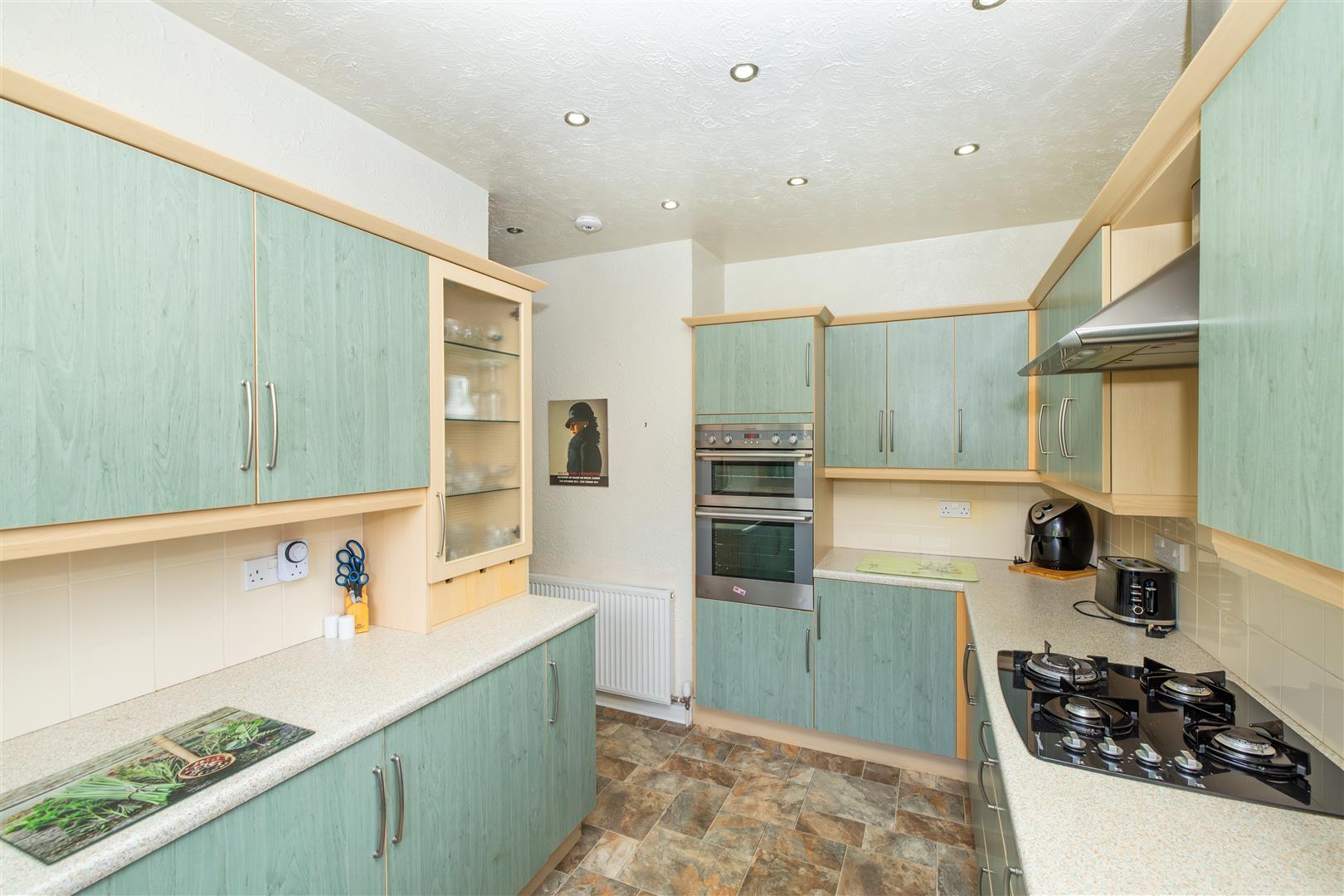 Kitchen - 3.99m x 4.22mmax (13'1" x 13'10"max) - Fitted with a range of wall and base units with worktops surfaces over incorporating a stainless steel sink with side drainer. Integrated appliances include an eye level double electric oven, gas hob, extractor hood and dishwasher. Space and plumbing for a washing machine. Window to the front and composite entry door granting access to the driveway.
