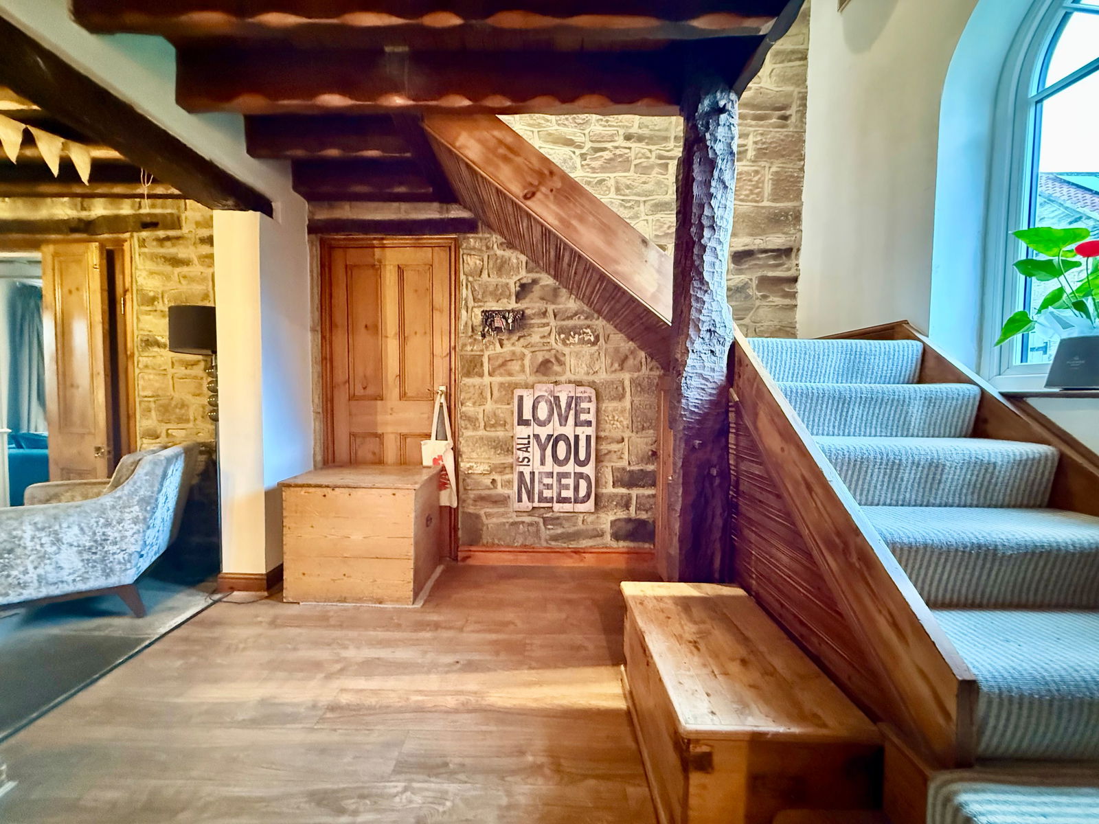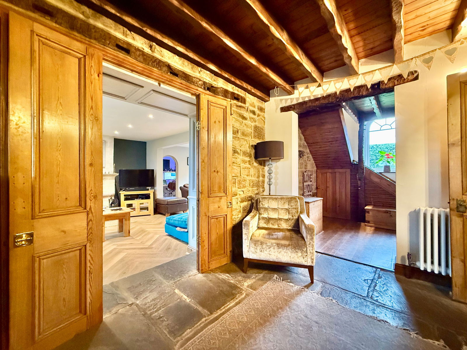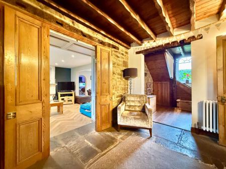 - Charming reception hallway with original Yorkshire stone flooring and exposed timbers