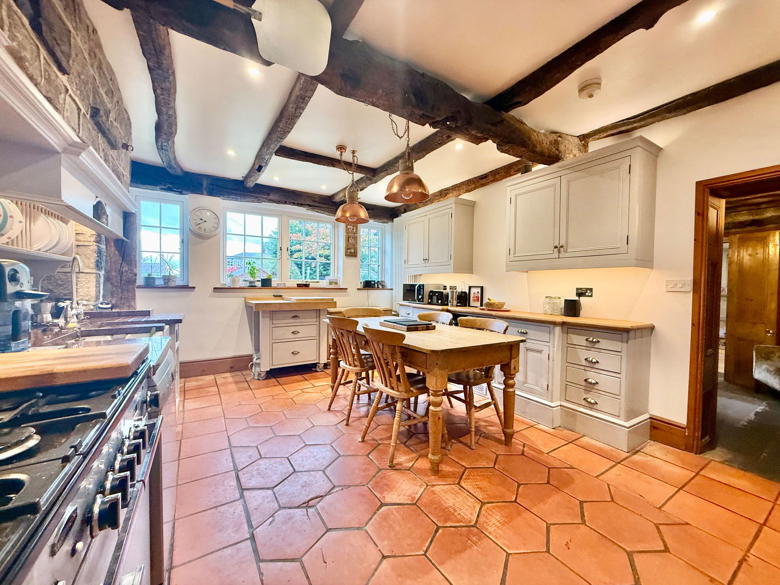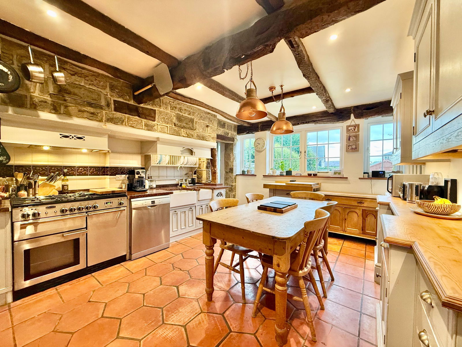 - Farmhouse-style kitchen with granite worktops