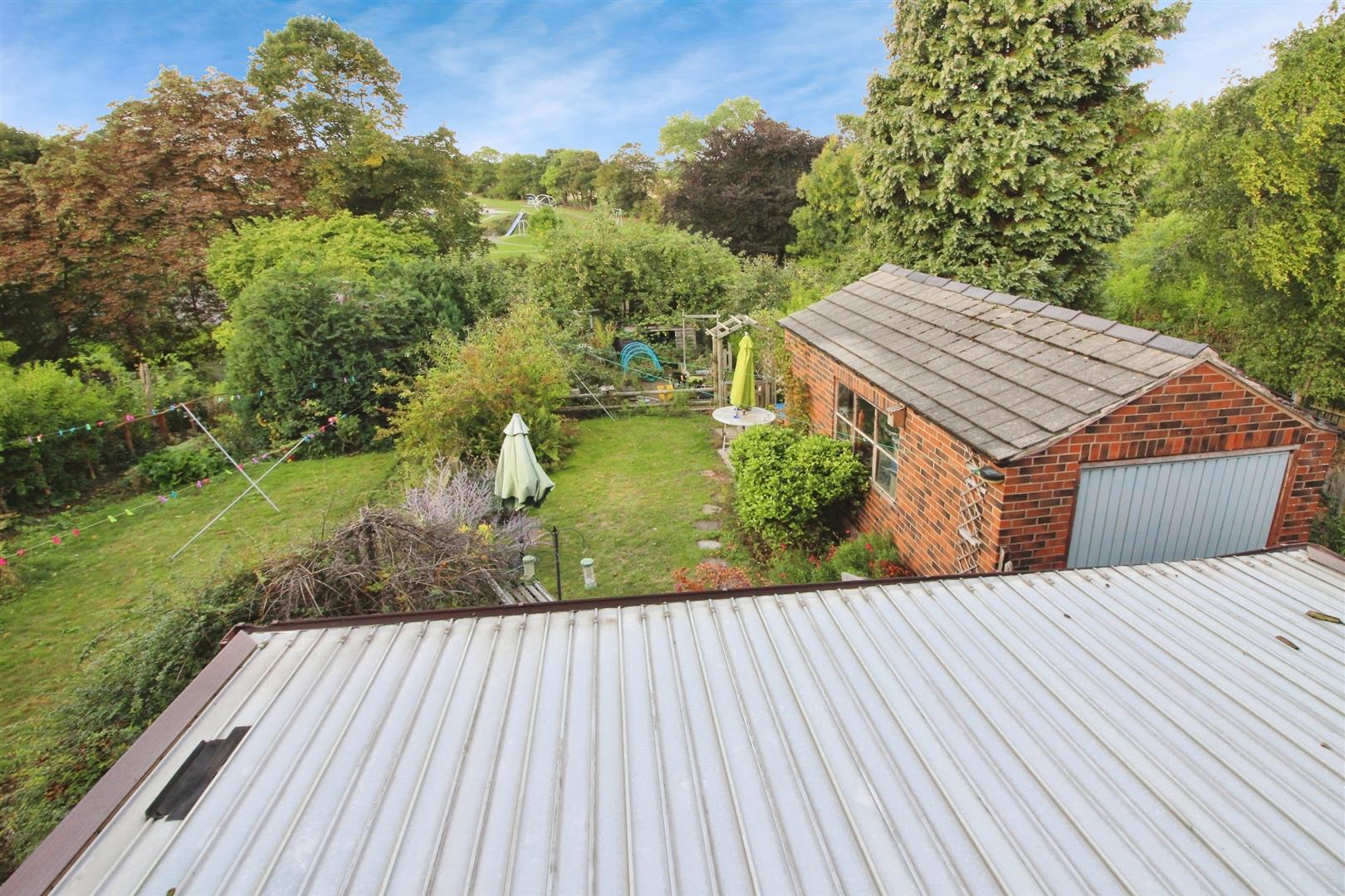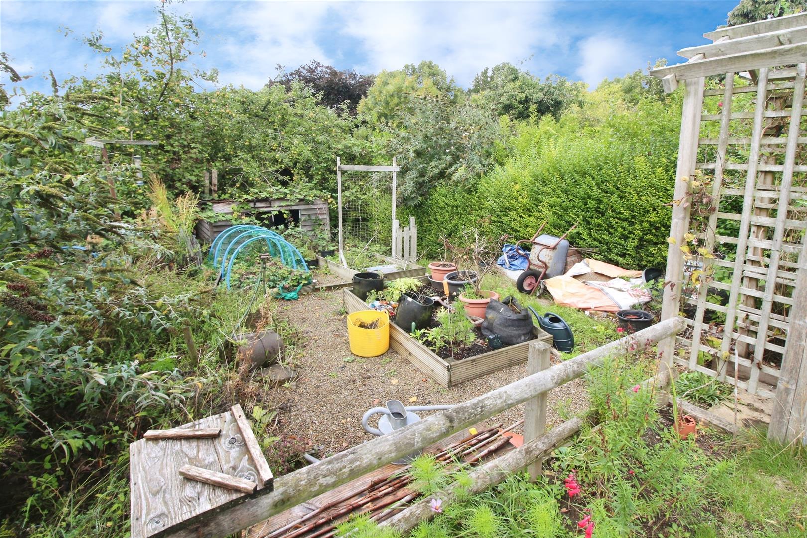 Outside - There are mature gardens to the front and rear. To the front, there is a perennial wild flower garden with mature shrubs and trees. There is a shared driveway to the side, which leads to a detached garage and offers off road parking for one small car to the front of the garage. Side gated access leads to a large rear garden, with a paved patio area which leads to a mainly lawned garden. There is a further garden area with mature apple trees, which is currently used for a vegetable patch - there is a mature garden area to the rear of the apple tree.