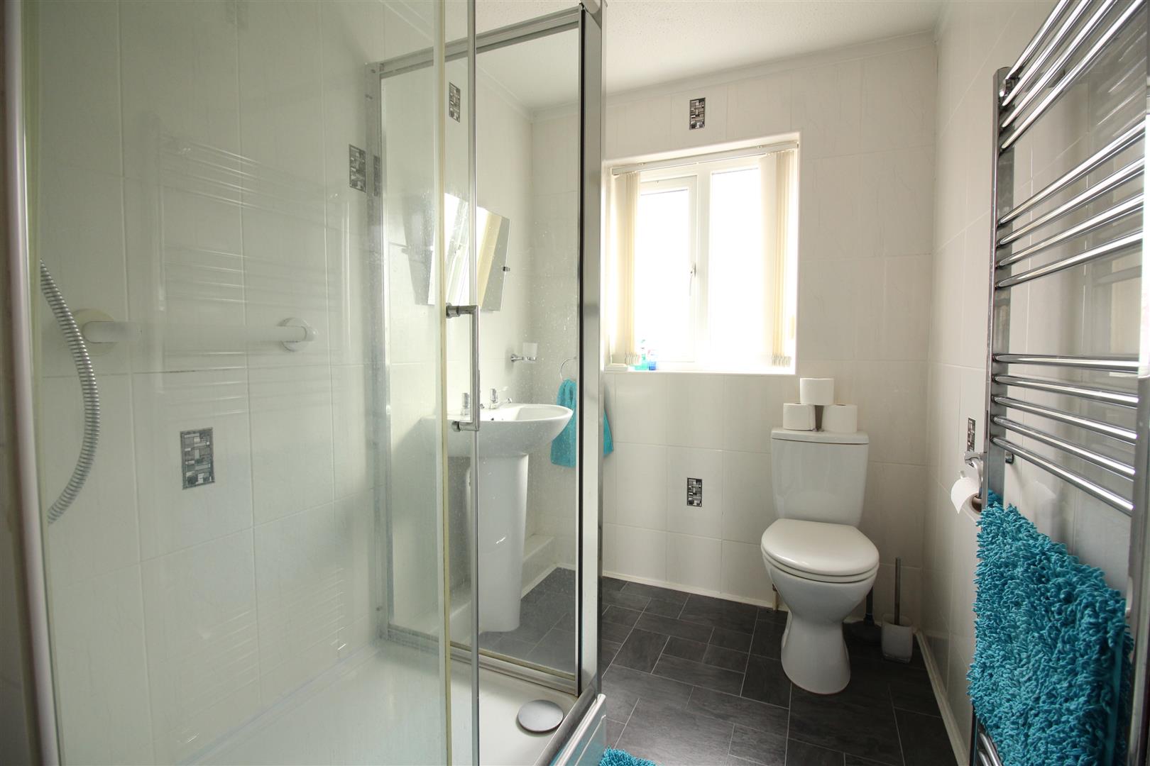 Accommodation includes two double bedrooms, both with built-in wardrobes, and two single bedrooms, also with built-in storage, offering flexible options for sleeping, study or play space. There is a single family bathroom fitted with a walk in shower enclosure and heated towel rail.