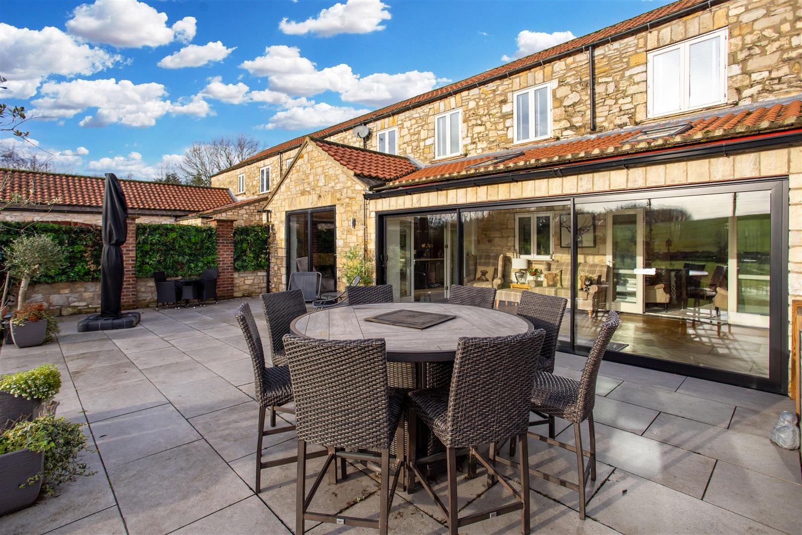 This four-bedroom semi-detached barn conversion is offered for sale in Newthorpe, near Sherburn, occupying a large plot approximately 0.33 acres with a delightful open outlook over fields to the rear. Tucked away with electric gated access, the property combines generous internal accommodation with excellent outdoor space, including a substantial garden, parking and a double garage.