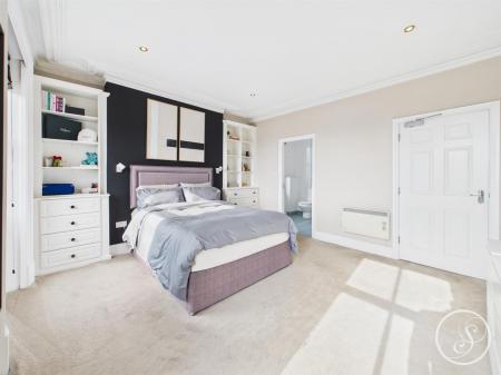 Bedroom 1 - The primary bedroom is very generous in size, comfortably able to accommodate a king or super king bed there is also built in storage to the alcoves, and the dual windows flood the room with light. The bedroom is laid to carpet and is complete with en-suite.