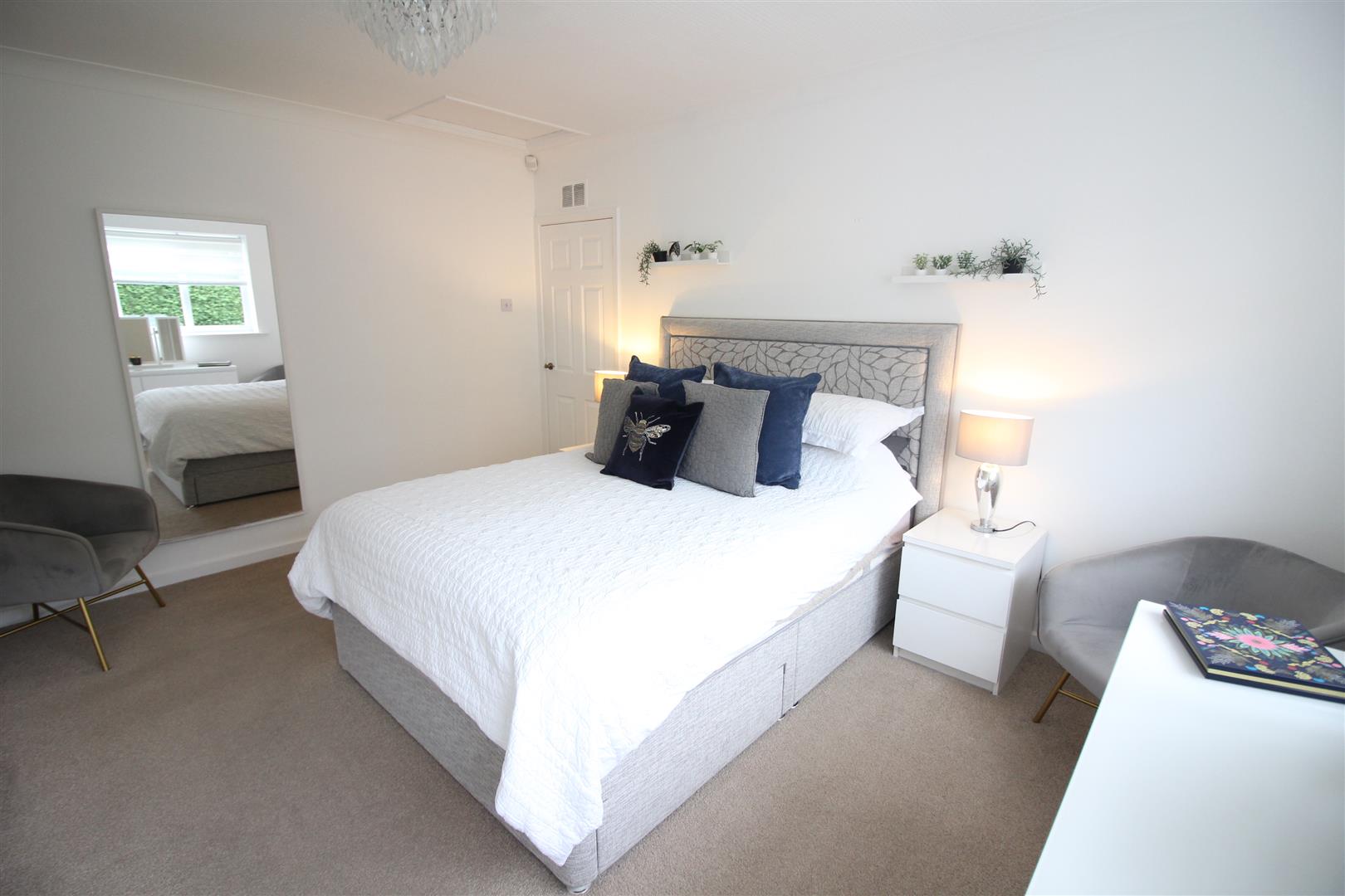 The modern kitchen is equipped with integrated appliances including a wine cooler, five ring hob, washing machine, fridge/freezer and dishwasher, plus ample units, ensuring a streamlined cooking experience. Two good sized double bedrooms provide ample accommodation; the principal bedroom is particularly generous, offering a relaxing sanctuary, while the second double bedroom enjoys direct access to the rear garden and seating area, perfectly suited for enjoying a morning coffee in privacy. Further features include a contemporary shower room with added modern storage and good sized walk-in shower.