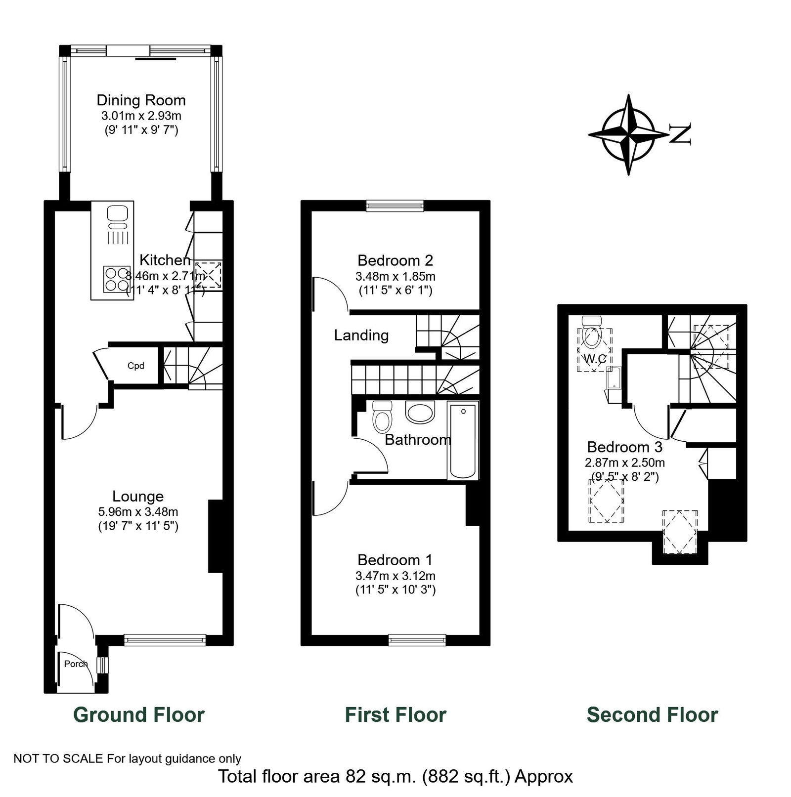 - Three bedrooms over three floors