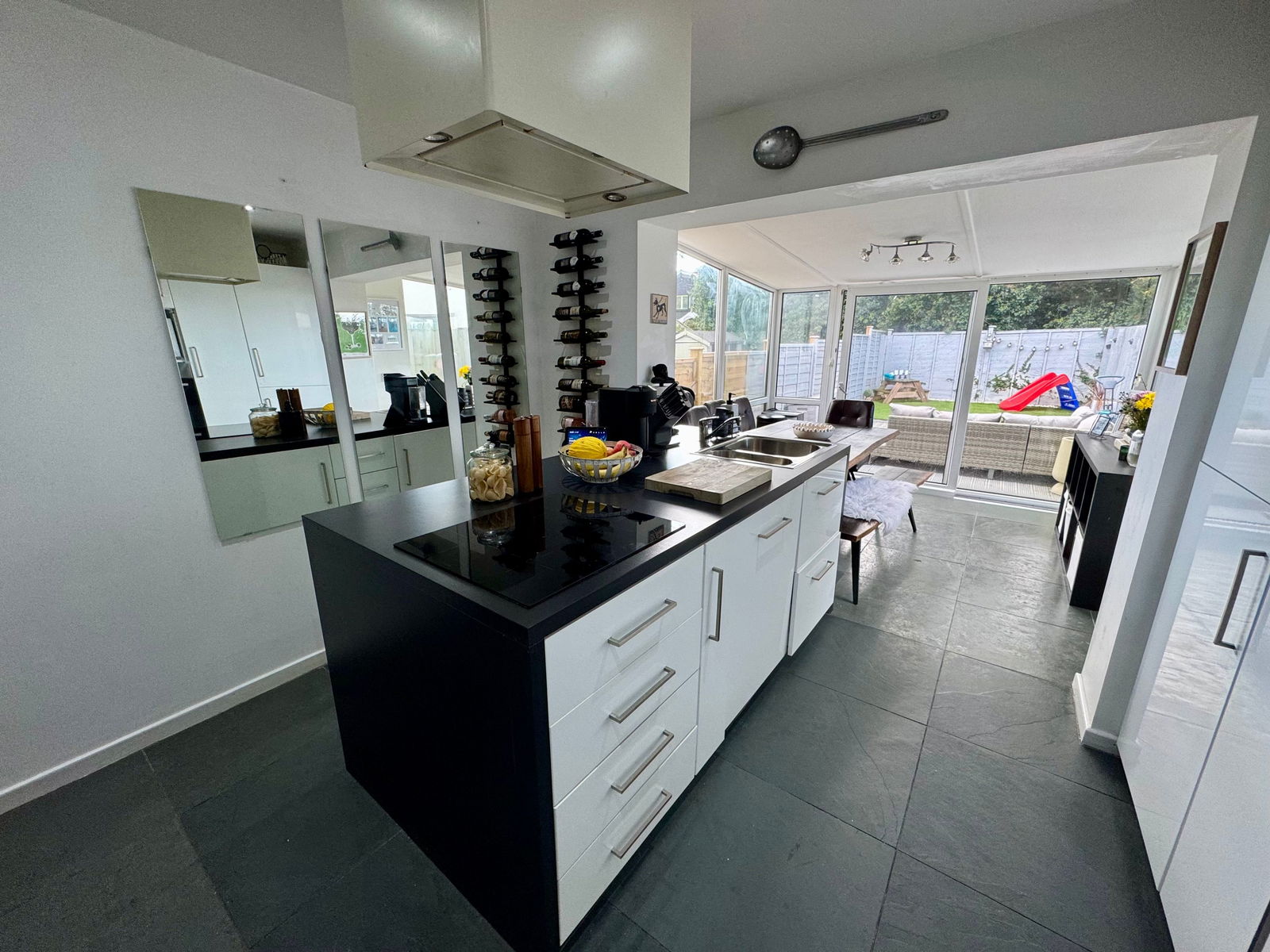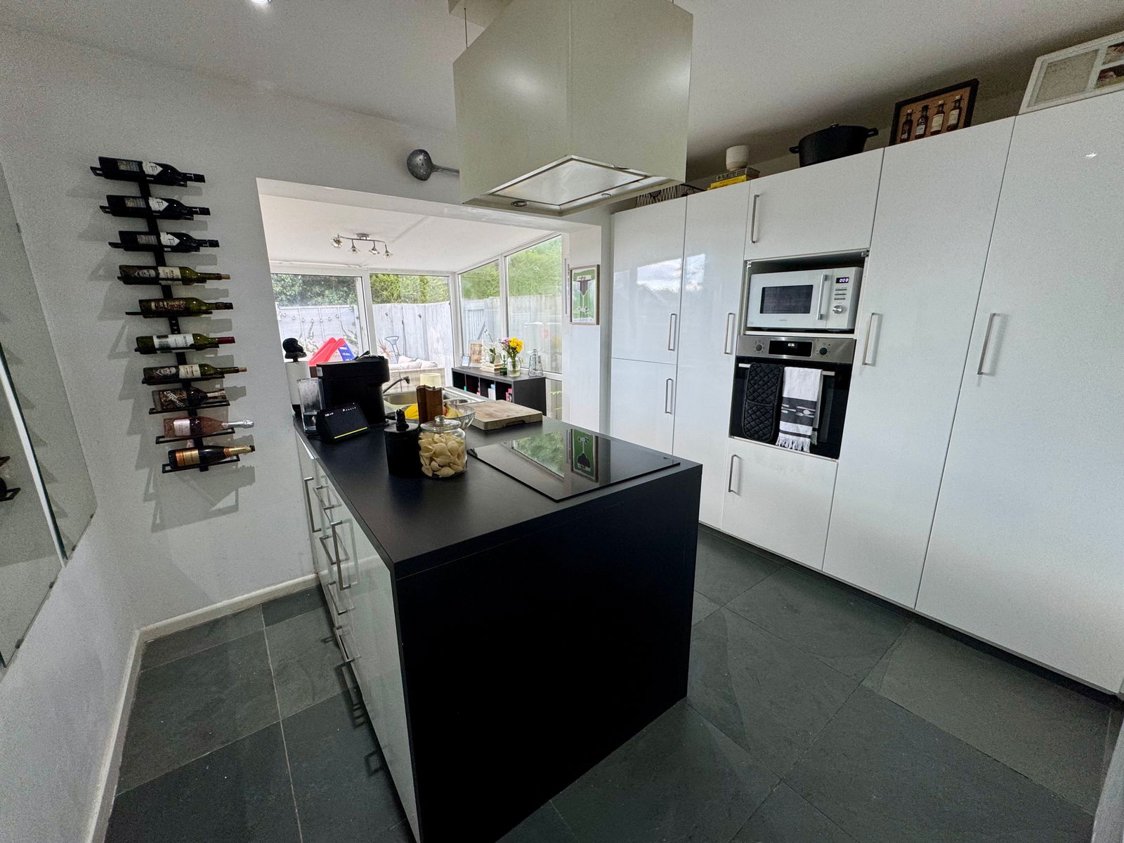 - Stylish kitchen with island and built in appliances