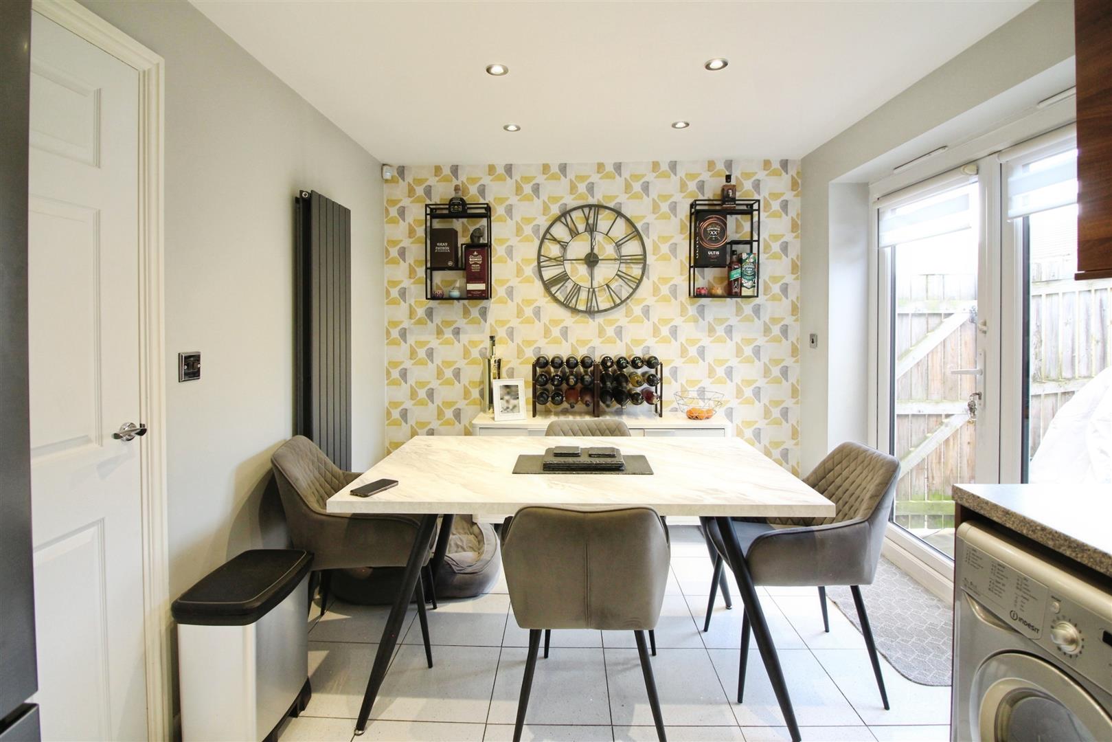 The property is entered through the composite front door to the hallway which provides a guest w.c. A spacious lounge offers an understair cupboard for everyday practical living and is complemented by a modern dining kitchen which connects well with the rear garden via French doors. Upstairs you will find two double bedrooms and one single bedroom, offering flexibility for family living, home working or guest use. The main bedroom benefits from an en-suite shower room and the house bathroom completes the accommodation.