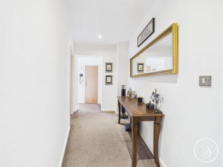 Entrance - The main block is entered via an intercom entry system. Stairs and a lift provide access to the first floor. Entering the property you are welcomed into the spacious hallway that offers access throughout the property, including a useful store cupboard next to the bathroom.