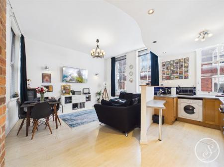 Nestled in the heart of Leeds, this wonderfully presented one-bedroom flat on Central Road offers a perfect blend of modern living and charming character. As you step inside, you are greeted by a spacious hallway which offers access throughout the apartment including to the main living space where you will find tall sash windows that flood the space with natural light, alongside stunning exposed brick walls that add a touch of warmth and style.