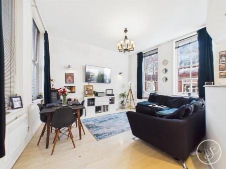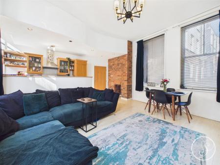 Living Room - This large open plan living space provides ample space for seating as well as a formal dining space. The kitchen is complete with integrated appliances including fridge/freezer, oven, hob with extractor above, washing machine and plenty of storage. The room boasts exposed brick, large windows and high ceilings.