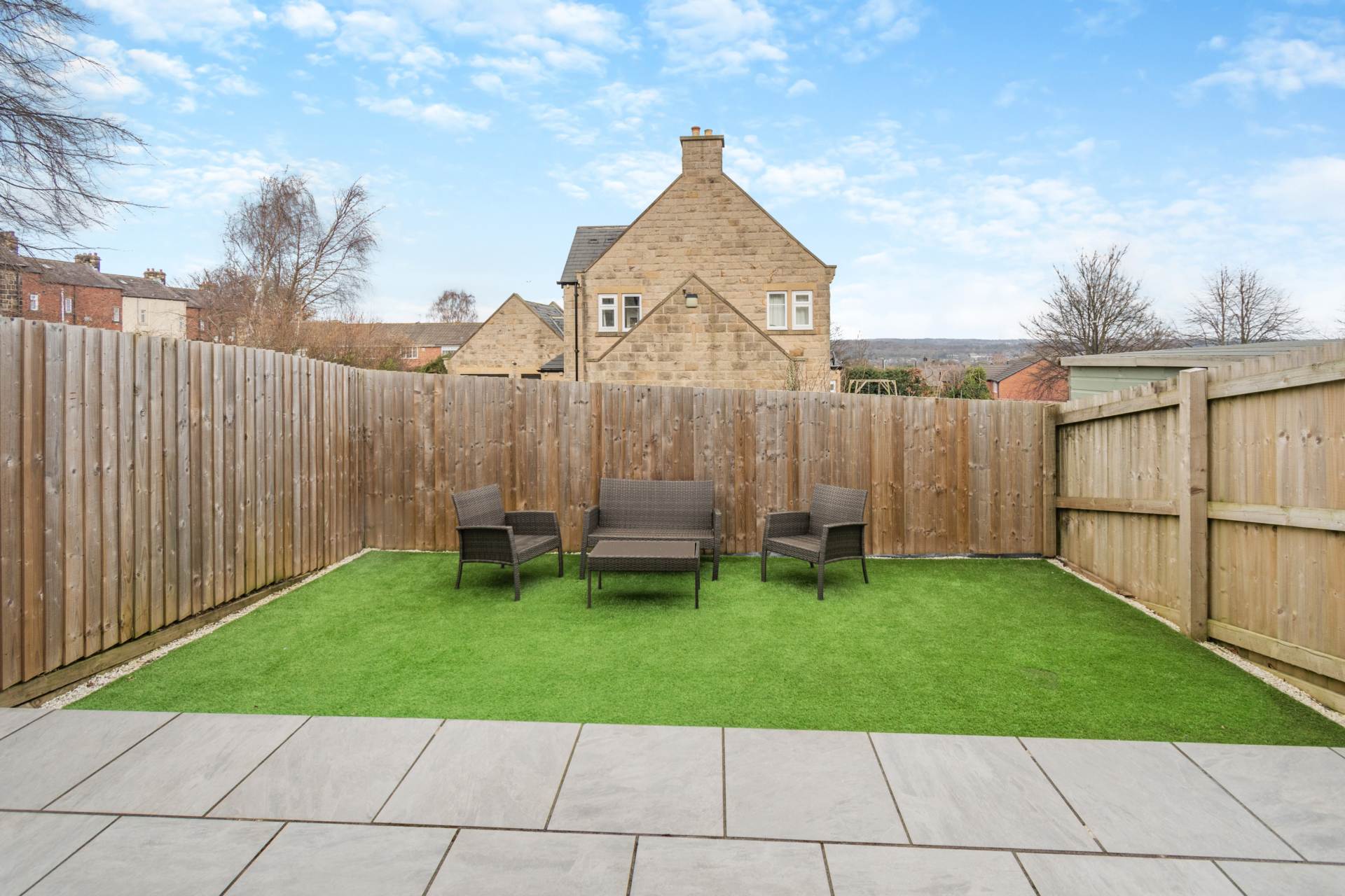 Externally, the property boasts a driveway with a small lawned area at the front, as well as an additional allocated parking space. The beautifully landscaped rear garden has been designed with ease of maintenance in mind, featuring indian stone paving and astroturf, creating a stylish and functional outdoor space.