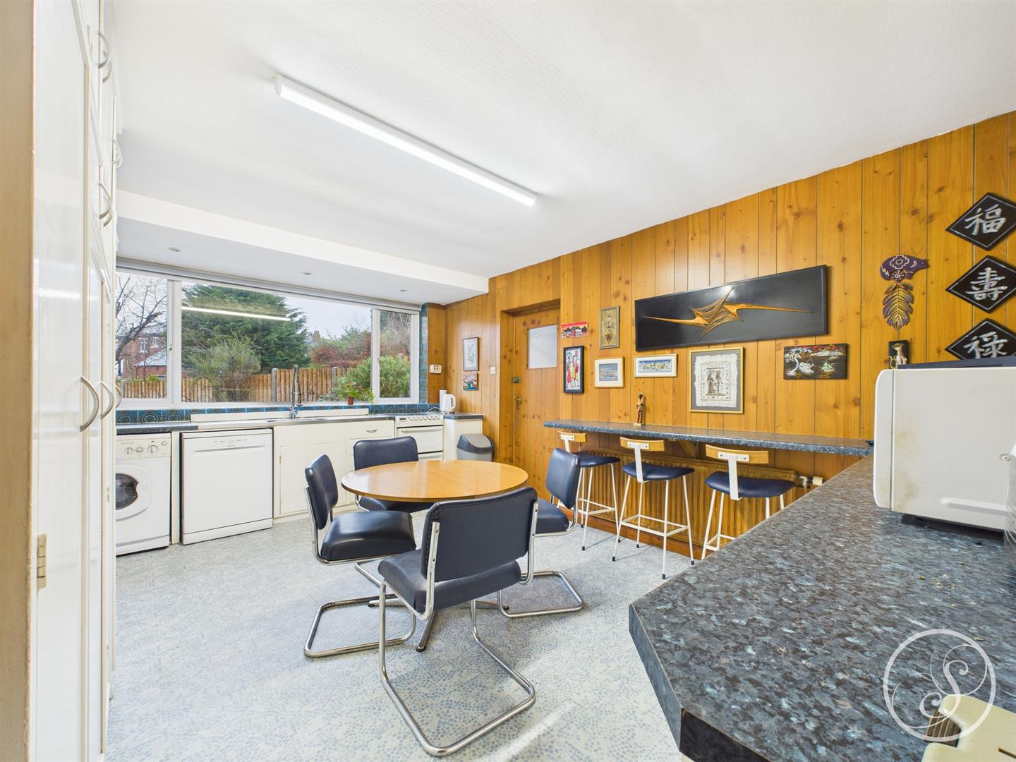 Kitchen - Generous sized kitchen overlooks the rear garden and offers space for a more informal dining table. Large pantry cupboard provides extra storage space. The kitchen leads through to a lobby area with two storage rooms, one housing the boiler and through to the third reception room currently used as an office.