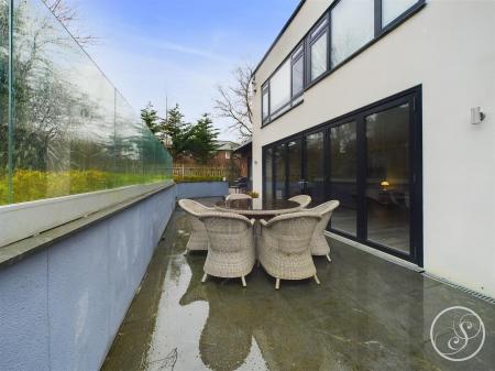 External - To the front of the property is a spacious tarmac driveway, as well as a lawned garden with mature trees. Side access is offered to the rear. To the rear is well landscaped two tier garden with patio seating area to the front of the garden accessed via the bifold and French doors, steps lead up to the raised lawned garden with glass railings. Mature plants run around the perimeter of the lawn.