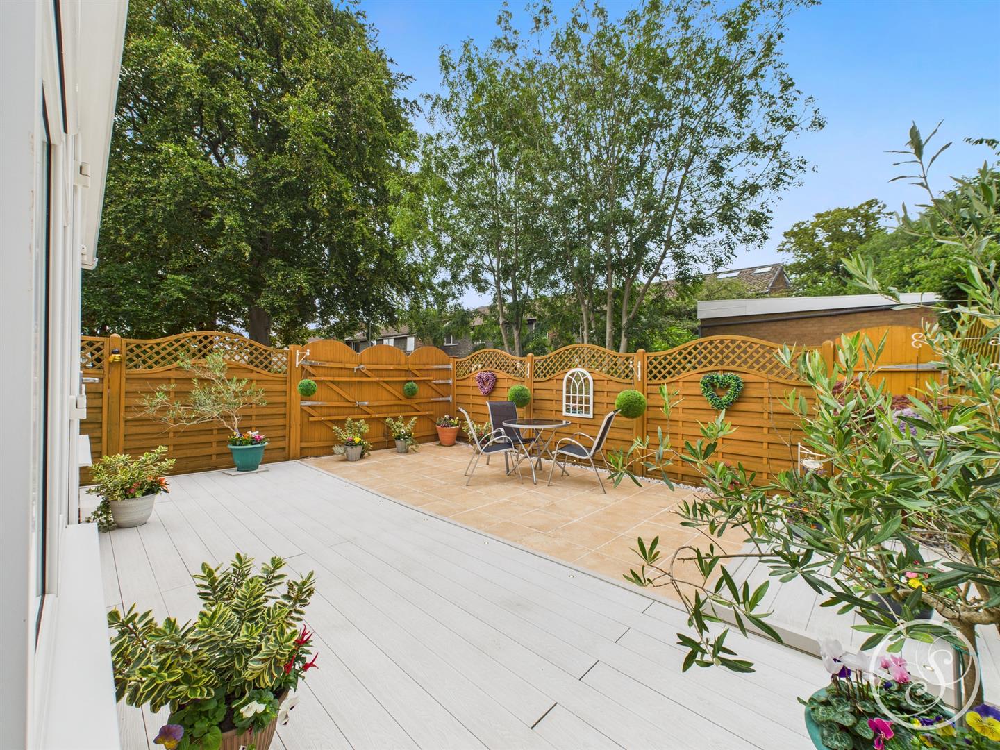 External - The property benefits from a large well maintained front garden with path leading to the entrance. To the side of the property is a graveled area ideal for sitting and enjoying the views onto the communal green. A low maintenance rear patio area is an excellent space for entertaining and relaxation, offering privacy with a mix of decking, paving and lighting.