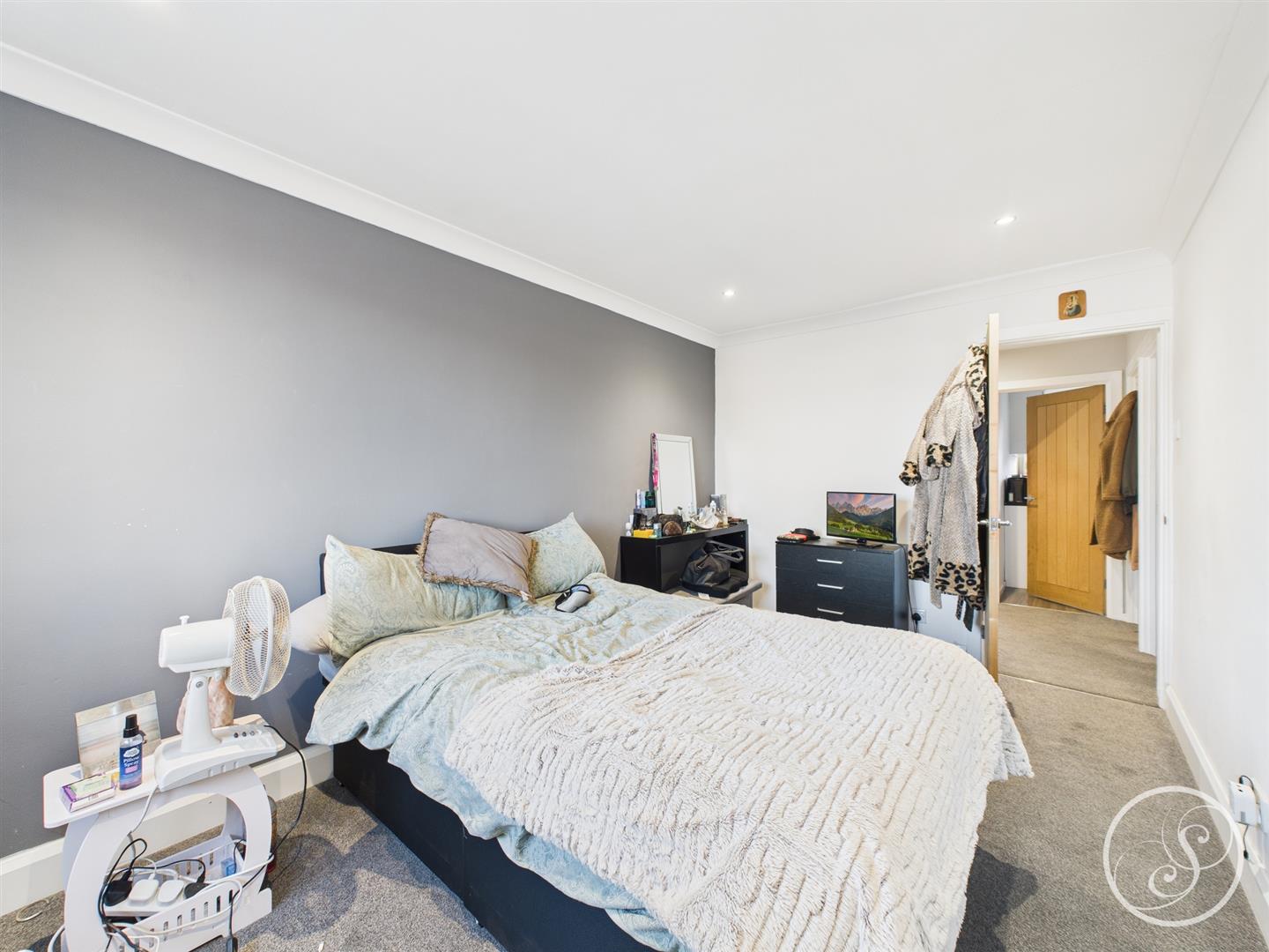 Bedroom 1 - A generously sized double bedroom laid to carpet, offering ample space for a double or king-size bed. The room benefits from a large window and a central heating radiator.