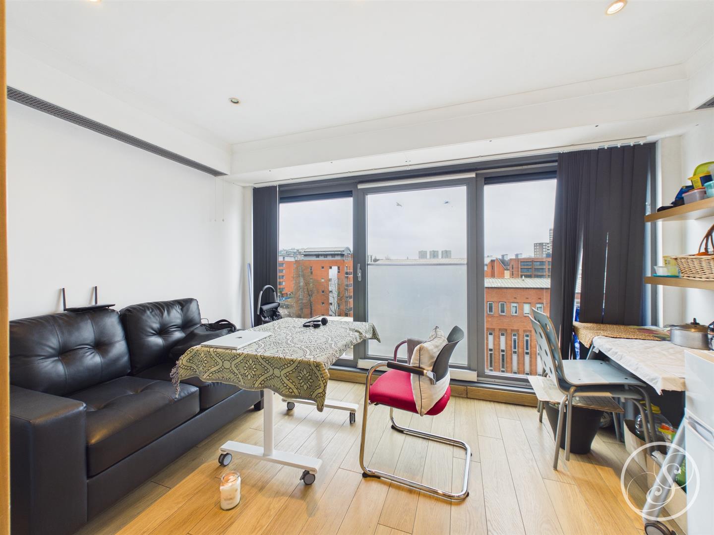 Lounge - Good sized lounge featuring large windows which flood the room with natural light, Juliet balcony and kitchenette.