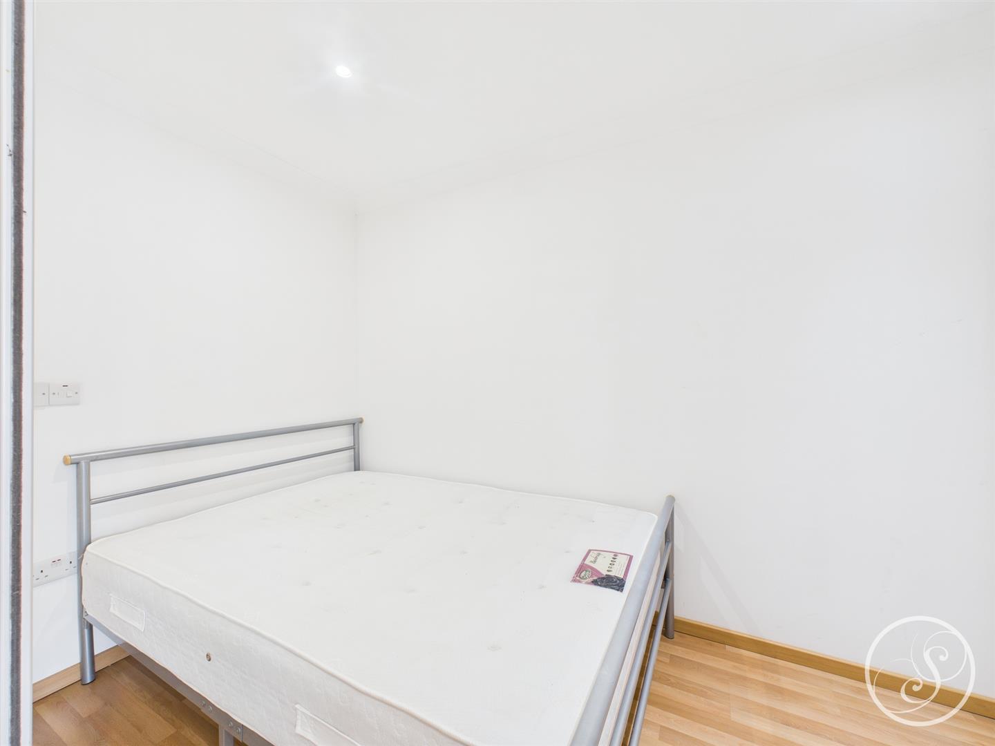 Bedroom - Wood strip laminate flooring, built in open wardrobe, accommodates double bed.