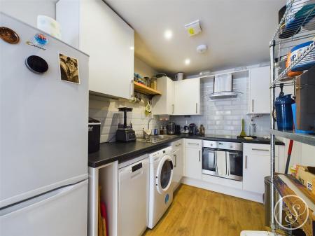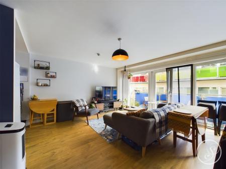 Kitchen/Living/Diner - A wonderful open plan living space with floor to ceiling windows flooding the room with natural light and offering access out to the balcony. The lounge also benefits from underfloor heating. Ample space is offered for seating and dining. The kitchen is made up of wall and base units and comprises oven, hob with extractor above, plumbing for dishwasher and washing machine.
