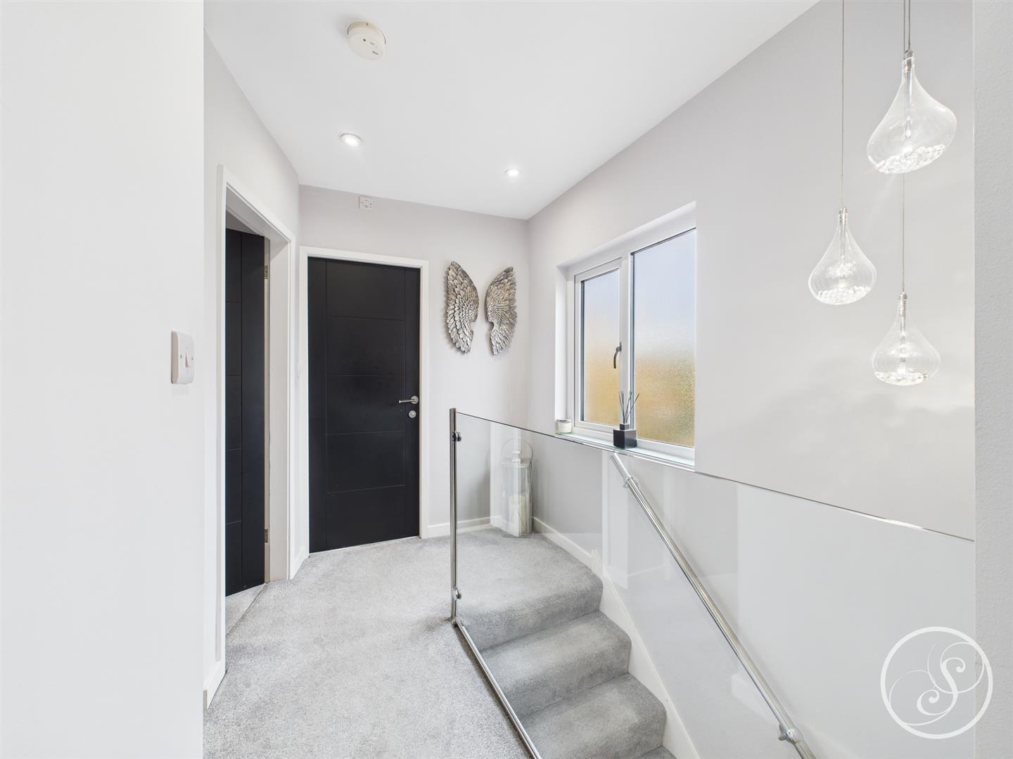 External - To the front of the property is an enclosed, low maintenance garden accessed via the open plan living space. To the rear is a tiered garden with raised patio seating area. A resin driveway for 2 cars leads up to the detached garage with manual up and over door.