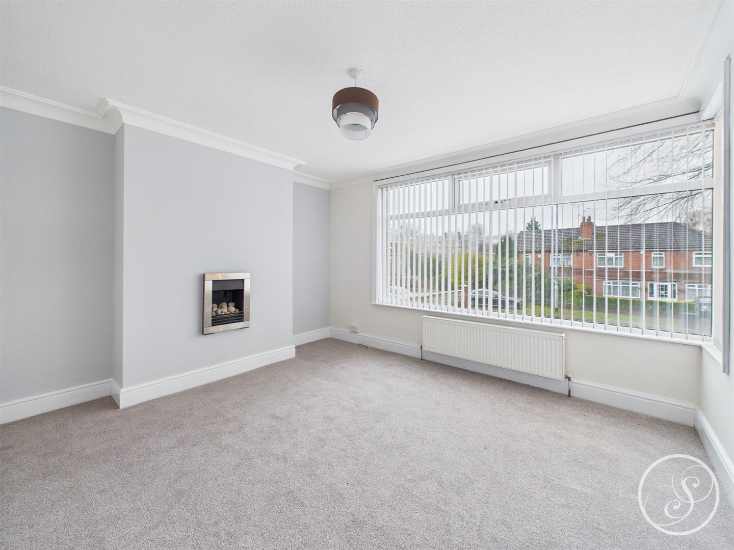 Lounge - Spacious and bright lounge, laid to carpet, with feature gas fireplace.