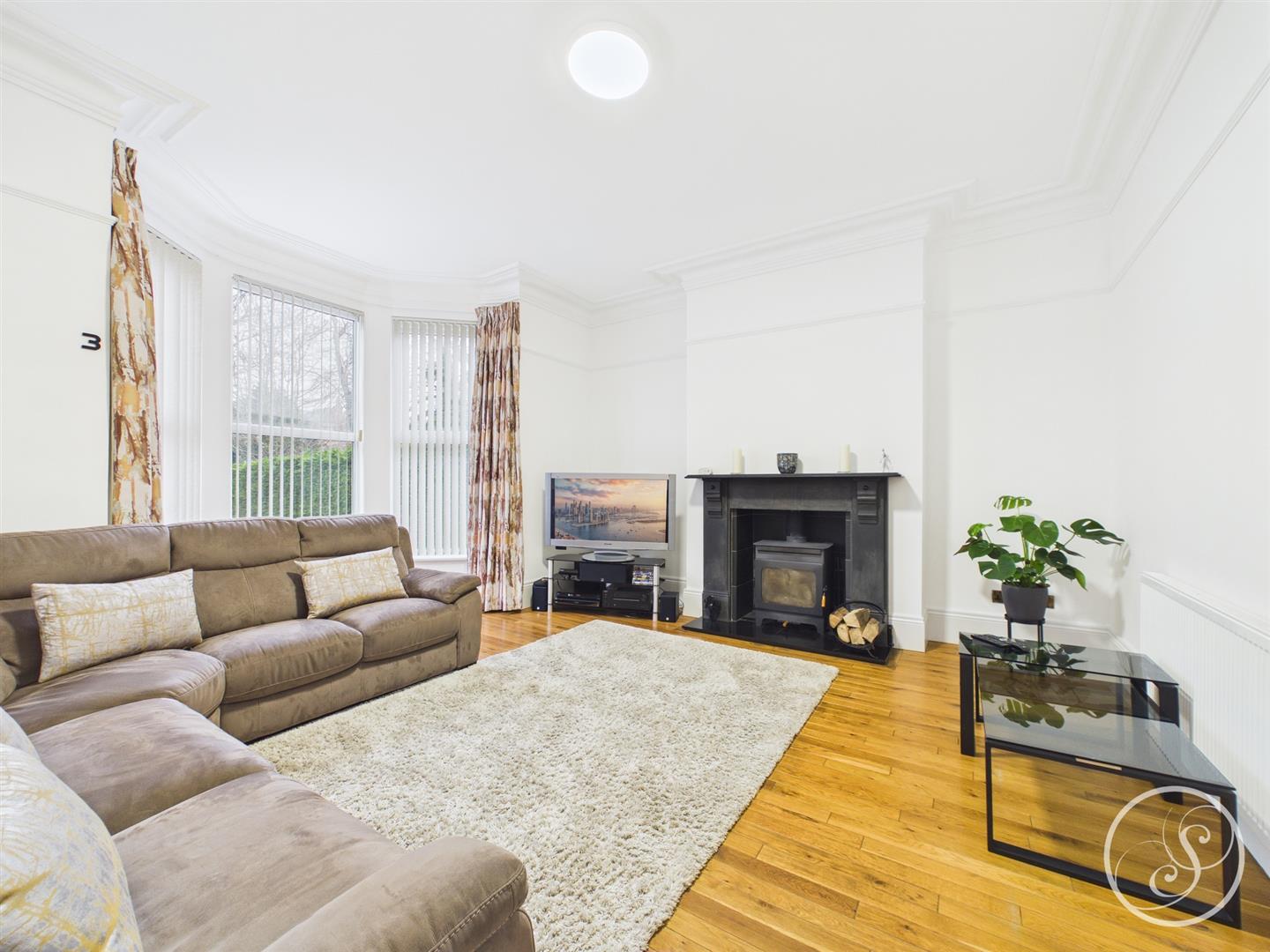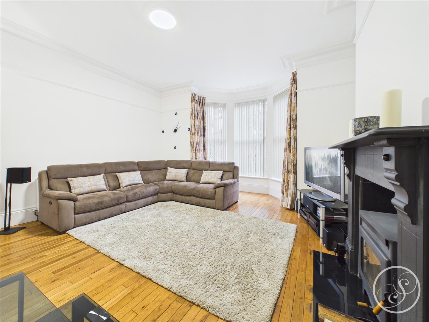 Lounge - Large formal lounge is flooded with natural light from the large bay window. The room offers an abundance of space for seating and is complete with a log burner.