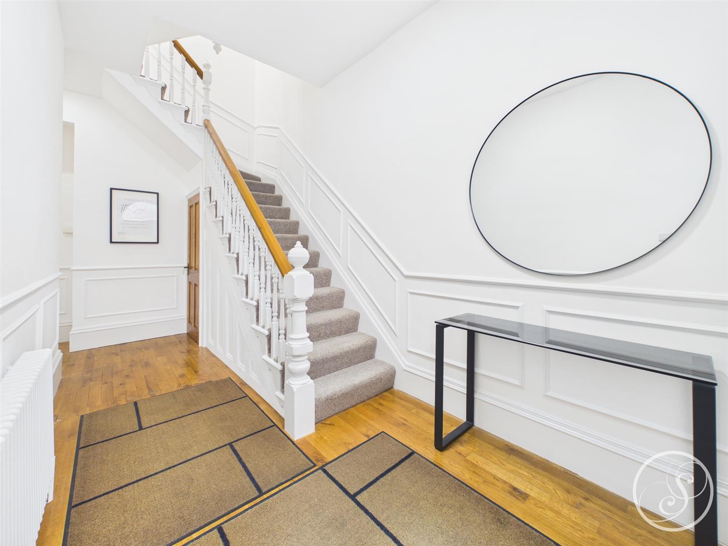 Entrance - Entering the property you are welcomed into the spacious entrance hallway. Boasting high ceilings and wood panel detailing it is a very grand entrance to a grand house. The hallway offers access to the basement.